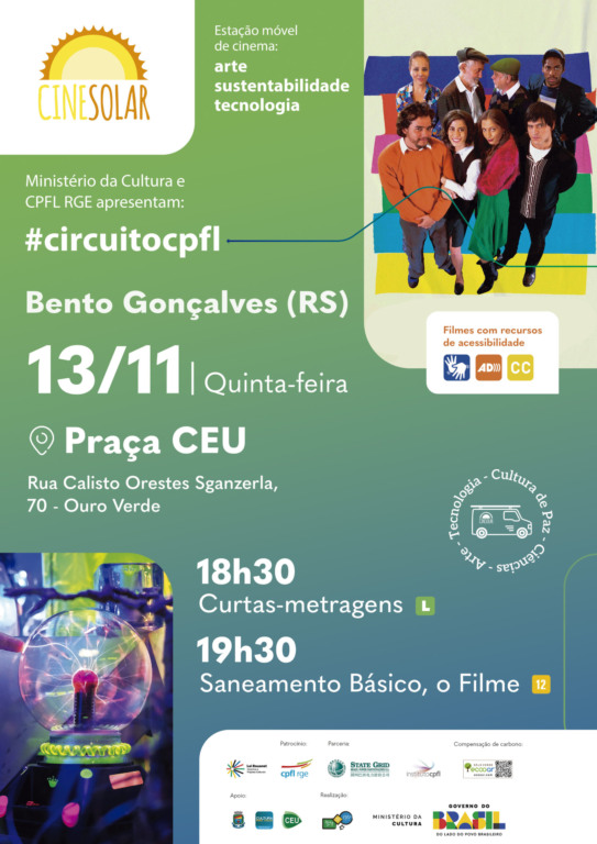 Cinema ao ar livre, pipoca, diversão em família, tudo de graça, com sustentabilidade, ciências e tecnologia. O encanto do CineSolar, o primeiro cinema itinerante movido a energia solar do Brasil, poderá ser vivenciado em Bento Gonçalves, nesta quinta-feira, 13 de novembro, a partir das 18h30, na Praça CEU, no bairro Ouro Verde, com várias atividades para todas as idades.
