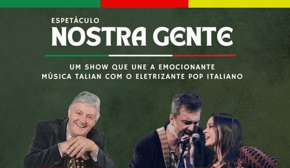 O espetáculo Nostra Gente vai celebrar os 150 anos da imigração italiana em Caxias do Sul com muita música e emoção. O evento, que faz parte do projeto Andiamo do Grupo RSCOM , acontece no dia 12 de novembro, quarta-feira, às 19h. A apresentação será no Teatro Municipal de Caxias do Sul, na Casa da Cultura, com entrada gratuita mediante a doação de 1kg de alimento não perecível.
