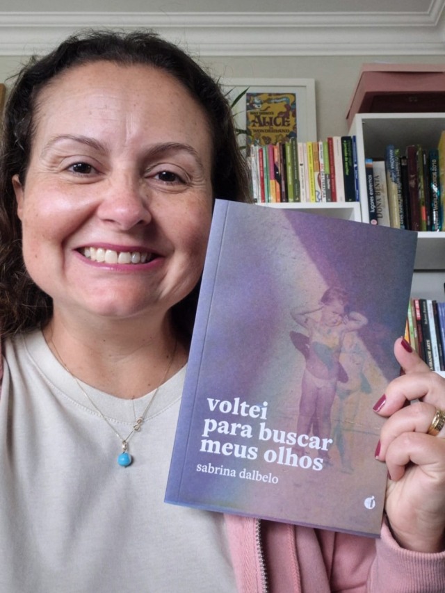 Escritora homenageada da edição de 2021, Sabrina retorna a Bento Gonçalves para escrever juntamente o capítulo 40 da Feira do Livro. Vai lançar neste sábado, dia 25 de outubro, às 13h30, “Voltei para buscar meus olhos”, exercício possível de autoficção e maturado por muito tempo, vem a lume com as alegrias e dores das passagens da vida.