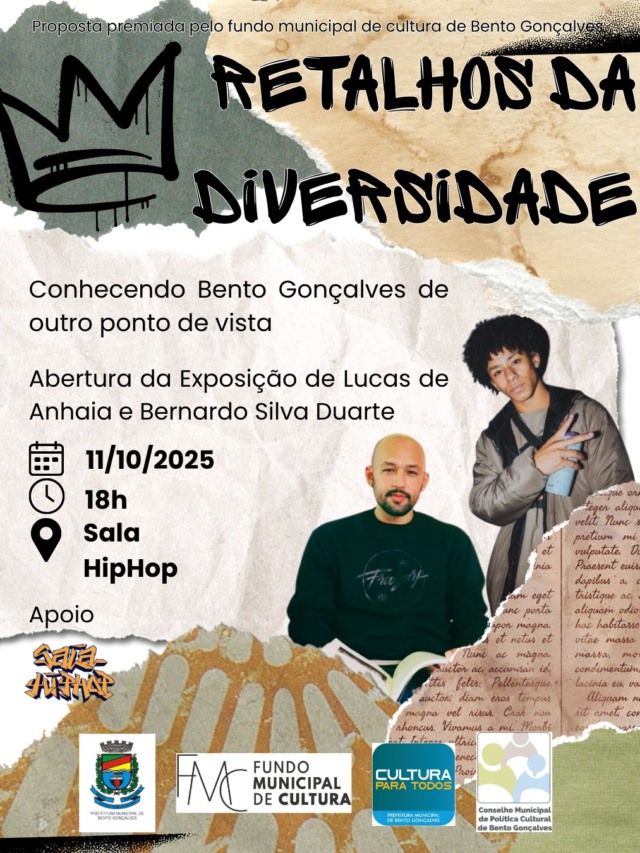 Mais do que uma mostra artística, “Retalhos da Diversidade” propõe uma reflexão sobre identidade, memória e pertencimento, ampliando os olhares sobre a pluralidade étnico-cultural presente na história local. O projeto foi contemplado com patrocínio de R$ 5 mil por meio do Fundo Municipal de Cultura e integra as ações voltadas à valorização da diversidade e da arte contemporânea. Além das colagens digitais, a exposição conta com uma obra inédita de graffiti assinada por Bernardo Silva Duarte, referência na cena urbana da cidade, que dialoga com temas da negritude e da arte de rua.