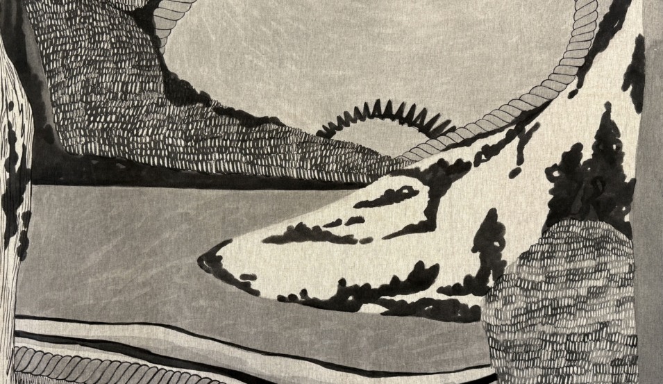 A série de trabalhos que será apresentada têm como ponto de partida a paisagem, onde elementos naturais – montanhas, lagos e rios – tornam-se condutores de significados simbólicos, culturais e afetivos. A artista elabora esses territórios através da consideração do real, sua negação e sua reconciliação em novas formas e ambientes, deslocando situações comuns e prosaicas para a esfera do imaginário, tomando como referência também os cenários cotidianos próximos ao seu ateliê, no interior da cidade.
