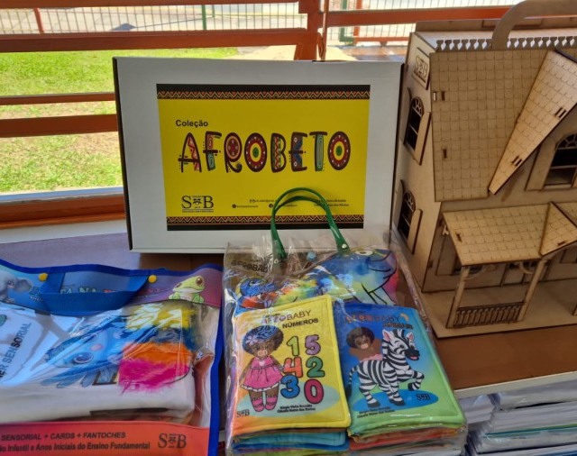 Foram adquiridos dez kits, contemplando todas as Escolas Municipais de Educação Infantil (EMEIs), já entregues às instituições. As coleções, intituladas “Afrobeto” e “Afrobaby”, incluem livros, jogos e um mascote, além de recursos para contação de histórias com dedoches e fantoches.