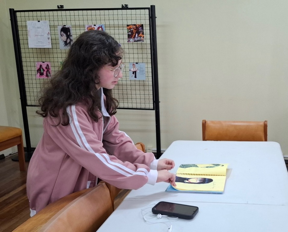 Lauren é estudante da Escola Estadual Egídio Fabris, de Bento Gonçalves, e sempre gostou de desenhar com programas digitais no tablet e celular, eventualmente com desenhos físicos em folha e caderno. A exposição segue até 31 de outubro com visitação na parte da tarde, quartas a noite e sábados de manhã.