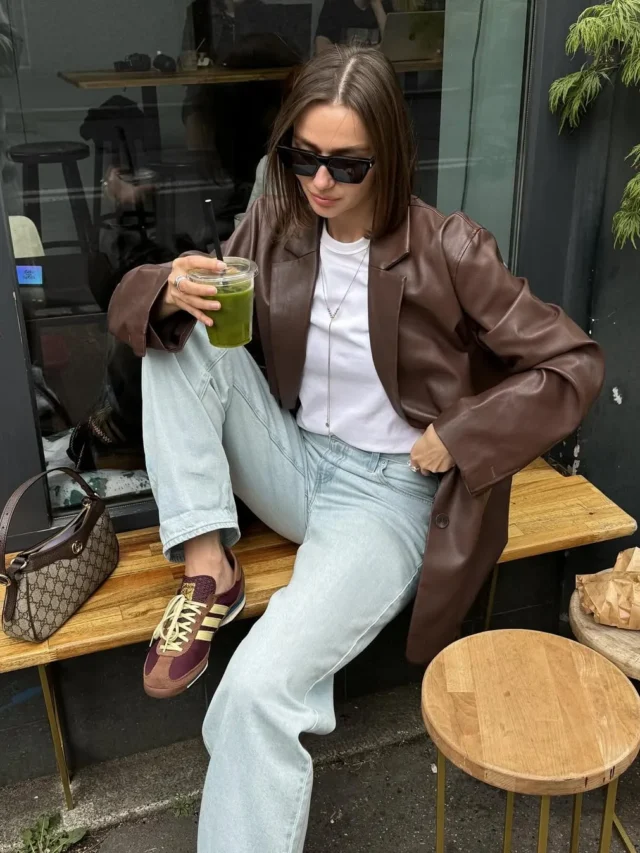 Se a ideia é equilibrar formalidade com conforto, a combinação de tênis marrom e peças de alfaiataria é perfeita. Vale usar com calça de corte reto, blazer oversized ou até conjuntos monocromáticos. O resultado é, sobretudo, um office look atual, que foge do óbvio e ainda transmite credibilidade.